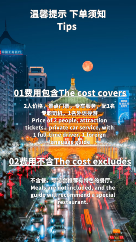 Price of 2 people, attraction tickets,private car service, with 1 full-timedriver, 1 foreign language guide