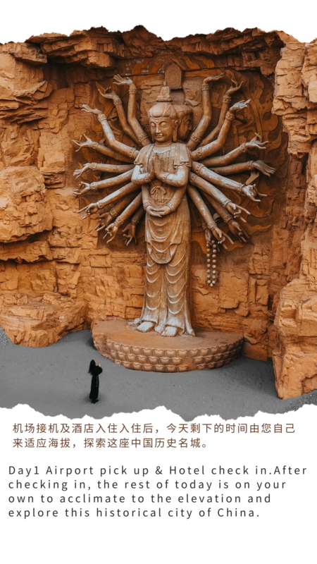 第 1 天机场接机和酒店入住。办理入住手续后,今天剩下的时间您可以自行适应海拔高度并探索中国这座历史名城。